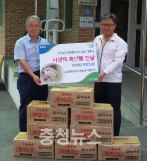 농협 충남지역본부(본부장 유찬형)는 19일 길정섭 부본부장이 올해 3월 명예이장으로 인연을 맺은 금산군 추부면 서대2리 마을을 찾아 ‘사랑의 축산물(삼계탕)’을 전달하고 마을 주민들을 보살피는 등 명예이장 활동을 활발히 펼쳤다.