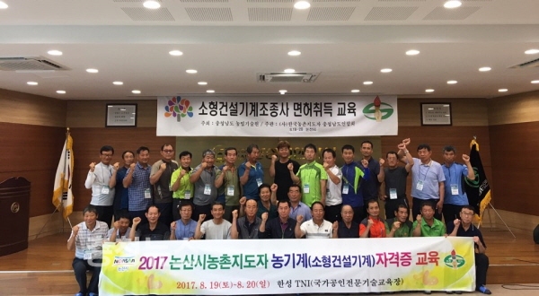 농촌지도자논산시연합회(회장 박형식)는 지난 19-20일 소형 농기계 조정사 면허 취득교육을 실시, 31명 전원 면허취득에 성공했다고 밝혔다.