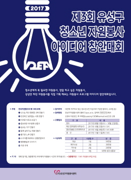 (사)유성구자원봉사센터(센터장 신찬균)는 청소년 자원봉사 아이디어 발굴을 위해 ‘제3회 유성구 청소년 자원봉사 아이디어 창안대회’를 개최한다.