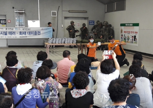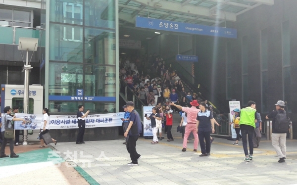 또한 이어서 을지연습 실제훈련으로 다중이용시설 테러·화재대피훈련을 온양온천역에서 민·관·군·경 합동으로 실시했다.