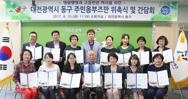 대전 동구(구청장 한현택)는 지난 25일 구청 소회의실에서 청렴행정과 주민 고충민원 처리를 위한 주민옴부즈만 위촉식을 개최했다.