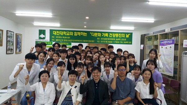 대전대 융합지식기반 글로컬 임상연구코디네이터(CRC) 전문인력 양성사업단(단장 황석연 교수)이 지난 26일부터 27일까지 충남 금산군에 위치한 삼남제약 강당에서 다문화가정을 위한 의료봉사를 실시했다.