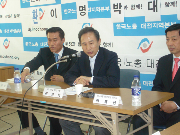 한편 이 후보는 과학고에 이어 한국노총 대전지역 위원장들과의 간담회 후 대전 노은동 농수산물 시장을 둘러본 뒤 28일 충북 청주에서 열리는 `국민성공대장정' 대회에 참석하는 것으로 2박3일간의 충청지역 방문 일정을 마무리 할 계획이다