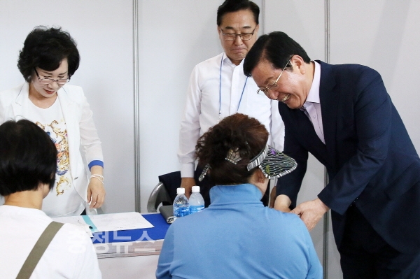 취업박람회 현장을 찾아 격려하는 장종태 구청장 모습