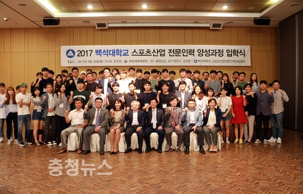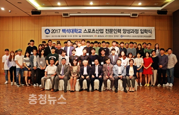 백석대학교(총장 최갑종)는 지난 28일 오후 7시, 천안 세종웨딩홀 컨벤션홀에서 ‘2017 스포츠산업전문인력양성과정’ 입학식을 개최했다.