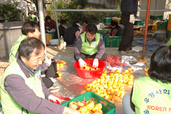 충청체신청(청장 이계순)에서는 2007. 10. 30.(화) 직원 30여명이 일손이 부족한 논산시 양촌면 상리마을을 방문해 곶감 만들기를 도왔다.