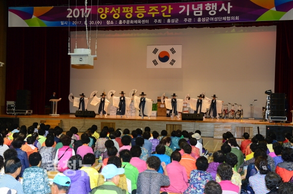 충남 홍성군은 30일 홍주문화체육센터에서 양성평등 주간을 맞아 남․여 모두가 한 자리에 모여 역량 결집과 화합을 다지는 기념행사를 지역주민 등 1,000여명이 참여한 가운데 성황리에 마쳤다.