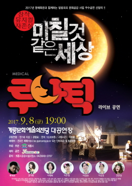 충남 계룡시(시장 최홍묵)가 오는9월 8일 오후 7시 계룡문화예술의 전당에서 마음이 아픈 사람들에게 위로를 전할 뮤지컬 ‘루나틱’ 을 선보인다.