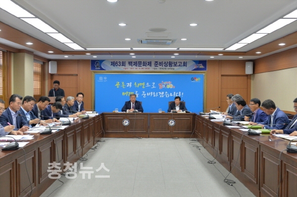 군은 지난 31일 군청 브리핑실에서 이용우 군수를 비롯한 실‧과‧관‧단‧소장 및 읍‧면장 등 관계 공무원 40여명이 참석한 가운데 백제문화제 준비상황에 대한 보고회를 개최했다고 밝혔다.