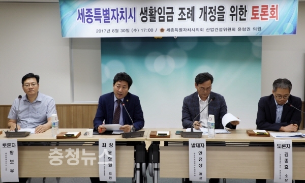 세종특별자치시의회(의장 고준일) 산업건설위원회(위원장 안찬영) 소속 윤형권 의원 주관으로 지난 30일 ‘세종시 생활임금 조례’를 주제로 토론회를 개최했다.