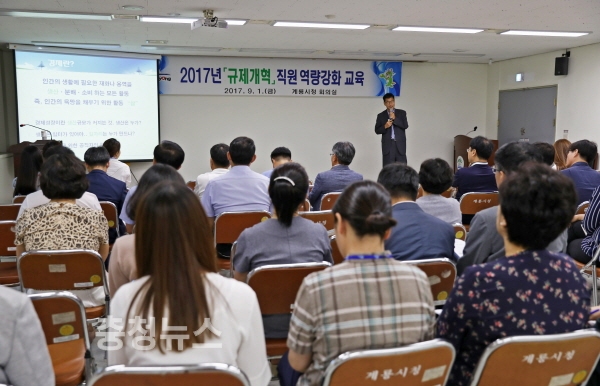 충남 계룡시(시장 최홍묵)는 지난 1일 시청 회의실에서 직원 120여 명을 대상으로 ‘규제개혁 직원 역량 강화 교육’을 실시했다.