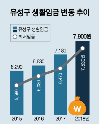 대전 유성구(구청장 허태정)가 지난달 30일 유성구 생활임금위원회의 심의결과를 토대로 2018년도 유성구 생활임금 시급을 7,900원으로 결정했다고 밝혔다.