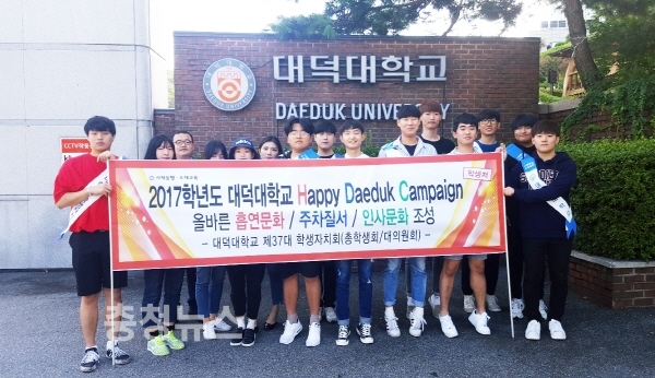 대덕대학교(총장 김상인) 제37대 대의원회 및 총학생회와 학생지원팀 직원들이 2017학년도 2학기를 맞이하여 4일부터 7일까지 교내에서 ‘올바른 대학문화 조성 캠페인’을 실시중이다.