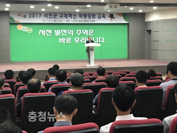 충남 서천군(군수 노박래)은 5일 농업기술센터교육관에서 공무원 180여 명이 참석한 가운데 2017년 규제혁신 역량강화 교육을 실시했다.