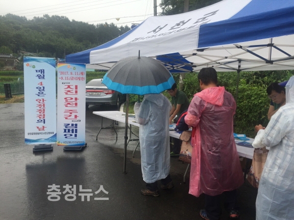 또한 서천군민안전보험, 풍수해보험 리플릿 및 재난배상책임의무보험 전단지 등을 배포하고 생활속 위험요소를 사전에 신고하여 대형재난을 예방하는 ‘안전신문고 앱’ 어플을 홍보하고자 물티슈를 배포하는 등 생활안전사고 예방에도 만전을 기했다.