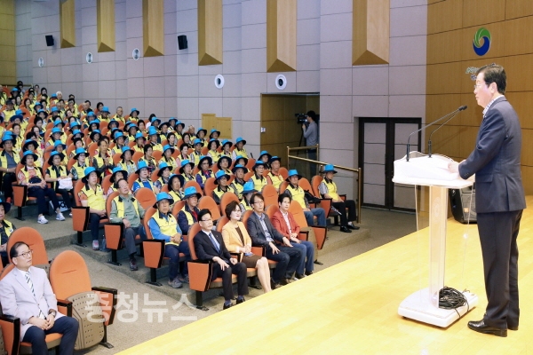노인일자리사업 교육 중 장종태 구청장 인사말 모습
