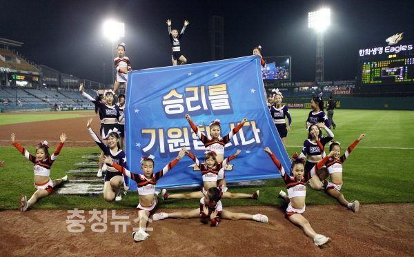 한편, 한화갤러리아타임월드 “희망 트레이너-꿈꾸는 날갯짓”과 한화종합연구소 “대전 아동 Cheer-up"프로그램에 참가하는 치어리딩 동아리 2개 팀은 오는 10월에도 한화갤러리아타임월드와 세종호수공원에서 연합 치어리딩 공연을 한화이글스 치어리더들과 함께 선보일 예정이다.