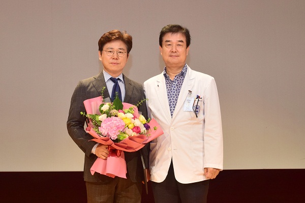 부총리겸 교육부장관 상을 수상한 임두혁팀장(좌)과 홍인표 을지대병원장이 기념촬영을 하고 있다.
