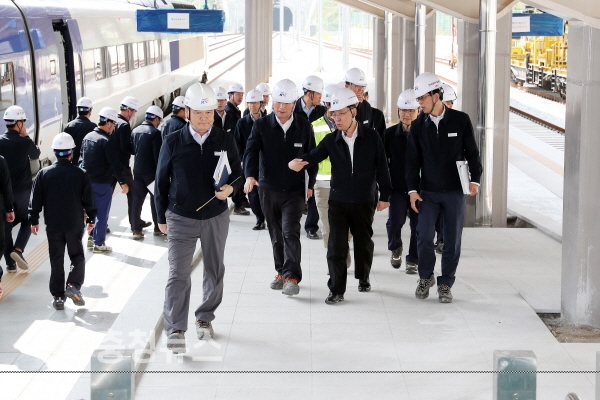한국철도시설공단(이사장 강영일)은 12월 개통을 앞둔 원주∼강릉 철도건설사업 등 2018 평창동계올림픽 수송지원 철도사업을 안전하고 완벽하게 개통하기 위하여 7일 강영일 이사장 등 간부진이 진부역 등을 방문하여 개통준비상태를 종합적으로 점검한다고 밝혔다.