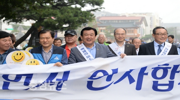 충남 공주시(시장 오시덕)가 7일 시민과 공직자 등 1천여명이 참여한 가운데 문화관광도시로서 손님맞이를 위한 범 시민 친절운동다짐대회를 공산성 주차장에서 개최, 중동사거리까지 캠페인을 실시했다고 밝혔다.