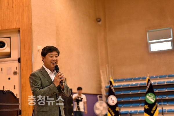 어르신 체육대회를 찾은 황명선 시장 인사말 모습