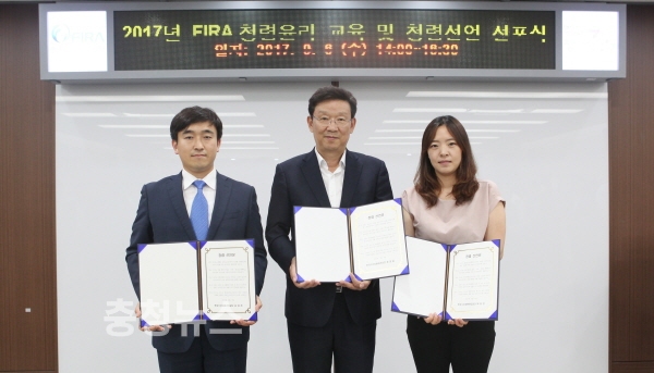 한국수산자원관리공단(FIRA, 이사장 정영훈)은 지난 6일 공단 한바다홀에서 정 이사장을 비롯한 전 직원이 참석한 가운데 청렴윤리 교육을 실시하고“청렴 선언 선포식”을 가졌다.