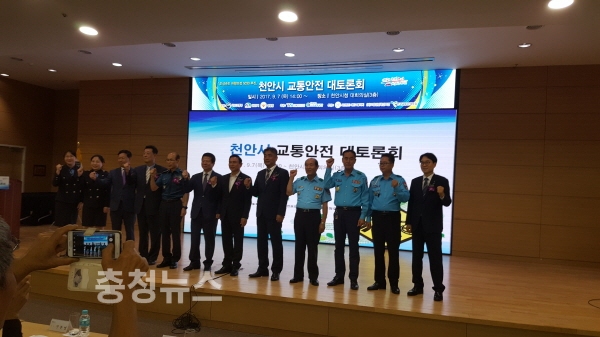 충남 천안시(시장 구본영)․교통안전공단 중부지역본부(본부장 오인택)와 도로교통공단 대전․충남지부(지부장 주두환)는 7일 천안시청 대회의실에서 “교통안전 행복도시 천안 만들기” 대토론회를 개최했다.