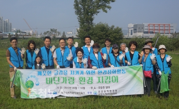 (사)대전소비자공익네트워크(회장 도정자)는 9일과 10일 양일에 걸쳐 금강유역환경청(청장 이경용) 후원으로 유등천 서남부터미널 일대에서 깨끗한 금강을 지키기 위하여 하천쓰레기 수거작업을 실시했다.