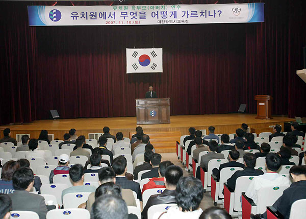 대전광역시교육청(교육감 김신호)은 지난 10일(토) 2007년 유치원 학부모(아버지) 연수를 대강당에서 개최하였다.