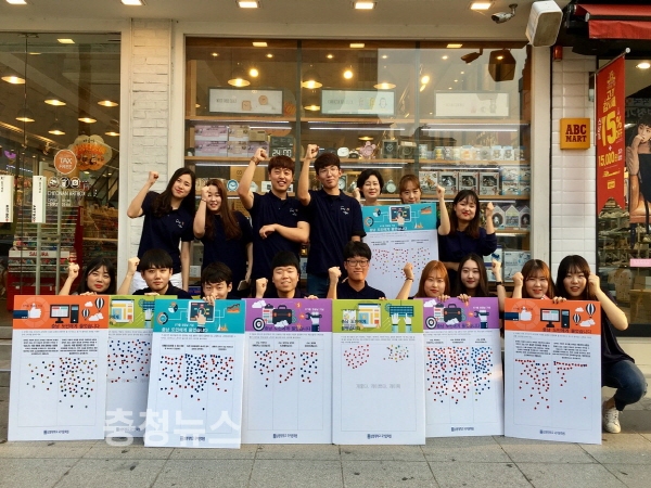 상명대 우리말 가꿈이 학생 20여명이 참가한 가운데 열린 이날 캠페인에서는 공공언어에 대한 충남도민의 인식을 조사했다.