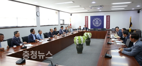 한남대를 방문한 서남대 및 남원 지역 관계자들이 간담회를 하고 있다.