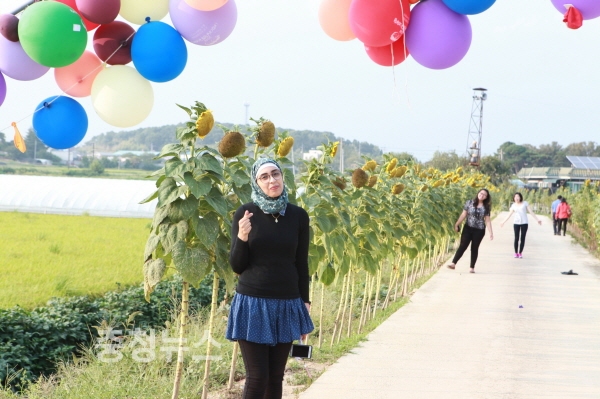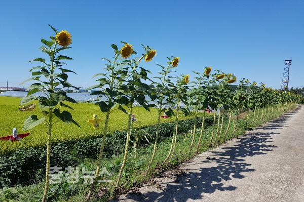 마을 주민들은 지난 3월 해바라기 씨앗을 직접 파종했으며, 마을입구와 들녘에 1.0km의 코스모스 둘레길을 조성했다.