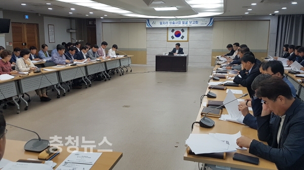 충남 아산시(시장 복기왕)는 18일 시청 상황실에서 부시장 주재, 부서별 일자리 창출사업 발굴 보고회를 가졌다.