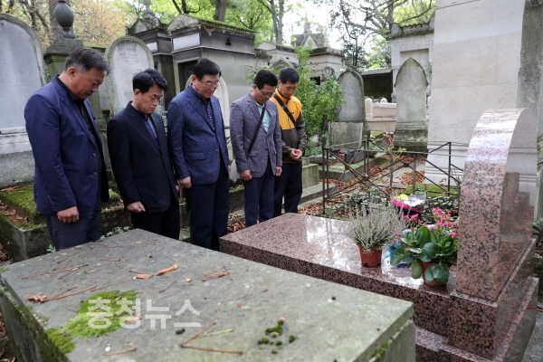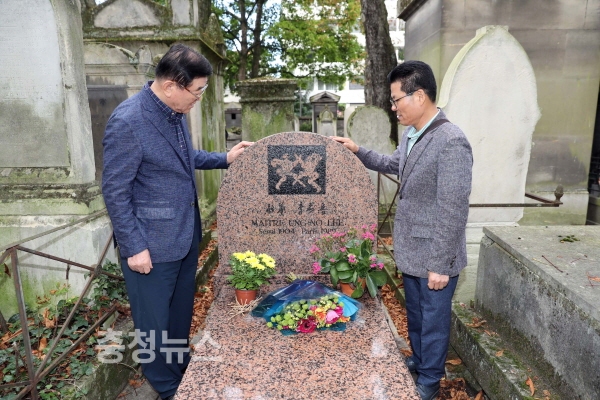 김 군수는 프랑스 방문 첫날 이응노 화백 묘소를 참배하는 과정에서 묘소의 관리 상태와 주변의 열악한 환경에 우려를 표하고 고암 선생이 생전에 고향에 묻히고 싶다는 유지를 받들어 박인경 화백에게 묘소 이전을 정중히 요청했다.