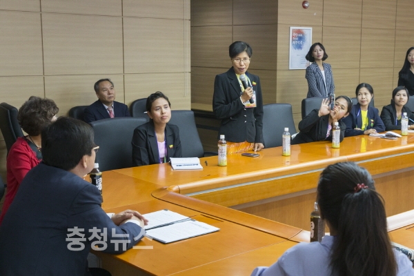 최교진 교육감은 19일 오후 세종시교육청 4층 대회의실에서 미얀마 교사들과의 간담회를 마련하여 “이번에 방문한 미얀마 교원들이 세종시교육청의 축적된 정보화교육 실천사례들을 경험하고, 자국에 귀국 후 미얀마 정보화교육의 선도적인 역할을 해주길 바란다”고 말했다.