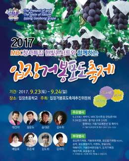 이번 축제는 ‘신(神)의 선물, 자연의 맛, 입장 거봉’이라는 슬로건 아래 MBC창사특집 한빛콘서트, 거봉가요제 등 공연행사와 다양한 이벤트·체험행사 등으로 진행될 예정이다.