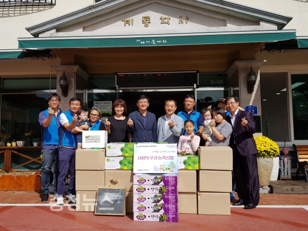 NH농협은행 충남영업본부(본부장 원종찬)는 추석 명절을 맞아 20일 논산시 연산면에 위치한 사회복지시설 계룡학사(원장 유창학)를 방문해 우리 농·축산물을 전달했다.