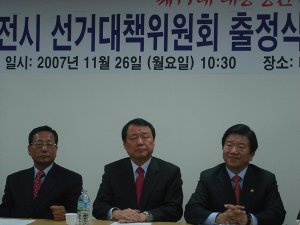 박 위원장은 또 “이명박 한나라당 후보는 행정수도를 무산시킨 장본인이다. 600년 충청권의 다시 없는 기회를 무산시킨 사람”이라며 “충청인들은 두 번의 선거에서 현명한 선택을 했다. 잘못을 깊이 반성하고 일자리를 창출하며 중소기업을 육성시킬 정 후보를 밀어 달라”고 덧붙였다.