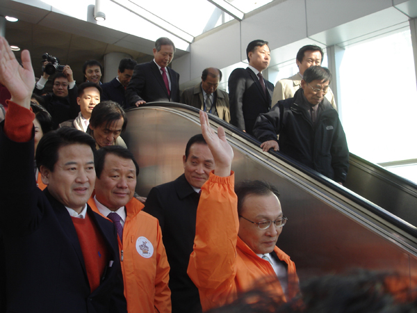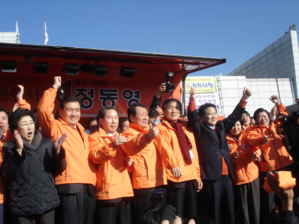 대통합민주신당 정동영 대선 후보가 첫 유세지로 대전역을 방문" 당선후 임신 출산,육아,보육 모두 국가가 책임 대학 입시 폐지를 주장하고 대통령이 되겠다며 지지를 당부했다.