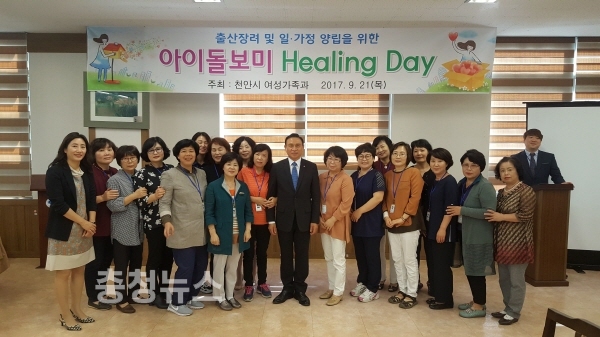 충남 천안시와 천안시건강가정지원센터는 지난 21일 시청 대회의실에서 130여명의 아이돌보미를 대상으로 ‘아이돌보미 힐링데이’를 개최했다.