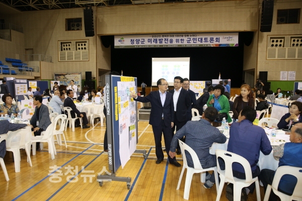 청양군이 22일 군민체육관에서 이석화 청양군수와 각계각층의 지역주민 200여명이 참석한 가운데 미래 100년에 대한 발전방안을 모색하는 '군민 대토론회'를 개최했다.