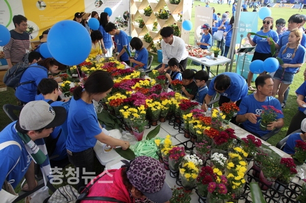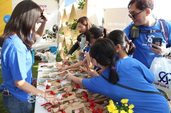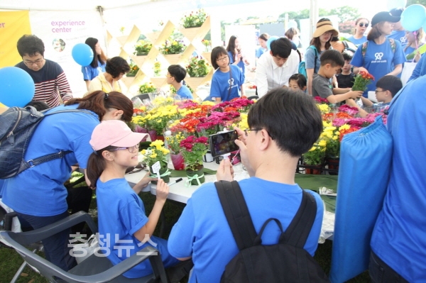 aT화훼사업센터는 페스티벌 참가자를 대상으로 한 국화꽃화분(1,000분) 만들기와 장미꽃 한송이 꽃다발(300개) 증정 이벤트 등 체험행사를 위한 꽃을 전량 기부했다.