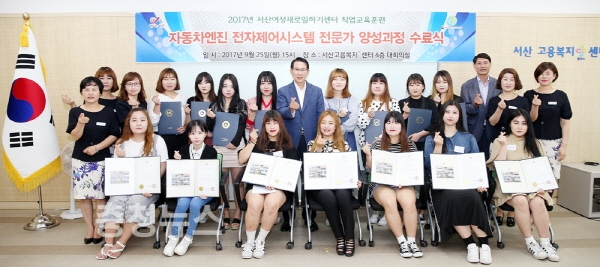 서산시가 운영하는 서산여성새로일하기센터가 지난 25일 고용복지플러스센터에서‘자동차엔진 전자제어시스템 전문가 양성과정’수료식을 가졌다.