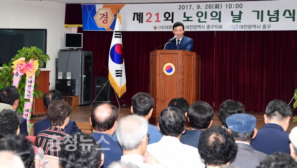 대전 중구(구청장 박용갑)는 26일 대한노인회 중구지회 2층 강당에서 ‘제21회 노인의 날 기념행사’를 개최했다.