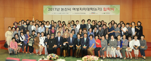 논산시 거주 여성들을 위한 ‘제6기 2017 논산시 여성자치대학’ 입학식이 26일 오후 건양대학교 논산 창의융합캠퍼스 명곡정보관 무궁화장홀에서 열렸다.
