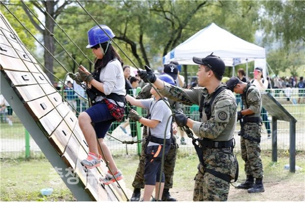 세부 프로그램으로는 계룡대 영내투어, 외·세줄 타기, 막타워 훈련, 에어 소프트건 사격체험, 버스킹 공연 관람, 위문편지 쓰기 프로그램 등 아빠 엄마와 함께 아이들이 즐길 수 있는 다양한 콘텐츠가 준비돼 있다.
