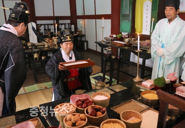 이번 추기 석전대제에서는 유림관계자들이 헌관으로 오성위(공자, 맹자, 안자, 증자, 자사)에 잔을 올리며 구민들의 무사 평안을 기원했다.