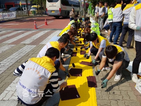 이 날 설치한 원당초등학교 옐로카펫을 시작으로 다음 달까지 탑동초, 서정초 등 6곳에 설치(약 3,000만원)하여 아이들의 보행안전을 도울 예정이다.