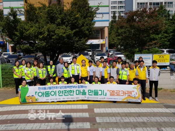 당진화력본부(본부장 박상준)는 지난 26일 원당초등학교에서 ‘아동이 안전한 마을 만들기 옐로카펫’설치 사회공헌활동을 시행했다고 밝혔다.