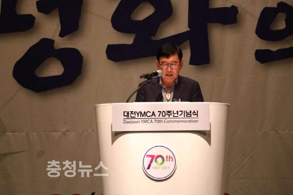 조광휘 이사장은 기념사를 통해 “대전YMCA는 해방과 한국전쟁 이후 근대화의 과정에서 이재민 구호, 직업학교, 문맹퇴치운동, 농촌계발운동, 청소년 운동 등에 주력해왔다”며 “예수그리스도의 복음과 삶을 따라 배우며 역사적 책임의식과 생명에 대한 감성을 일구어 사랑과 정의, 평화의 실현을 위해 힘써왔다”고 강조했다.